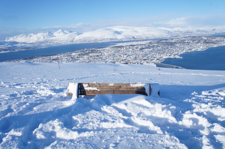 El Monte Fløya y el pico Storsteinen. Se llega cruzando el puente desde el centro, a pie o en el autobús 26 (que tiene una parada justo delante del Peppe´s Pizza) con diferentes rutas para subir andando. La más popular es el Camino del Sherpa, «Sherpastrappa» en noruego, conocido por sus 1.200 escaleras construidas por auténticos sherpas. La subida comienza por un camino que sale por detrás de la parada del funicular, girando hacia la izquierda. Primero pasas por varias calles asfaltadas entre casas y después encontrarás un poste con la señalización que indica los diferentes caminos que puedes tomar y su distancia. Durante el ascenso puedes disfrutar de buenas vistas de la ciudad, el fiordo, las montañas y además te encuentras con varias «banderas de plegaria» colocadas entre árboles, y diferentes especies de flores. Una vez en la cima, puedes recorrer todo el borde de la montaña (pegado a una valla), y «flipar» con las vistas de la ciudad, del fiordo y de las islas. También puedes entrar a la cafetería y salir a su mirador, o sentarte en una mesa del restaurante que esté pegada a los grandes ventanales. Y si te quedan ganas, puedes continuar hasta la cumbre del Hamperokken, con unas vistas que te dejan sin aliento (puede que también la subida). Esta cumbre se ha hecho famosa en los últimos años por la carrera ultra Tromsø Skyrace, que se celebra a primeros de agosto. Creada por el español Kilian Jornet y la sueca y campeona mundial de skyrunner Emelie Forsberg, un total de 56 km en los que se combinan resistencia, velocidad y habilidades de montañismo: https://tromsoskyrace.com/