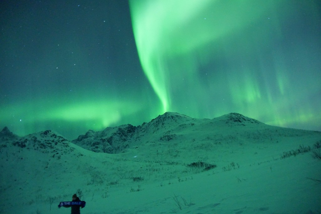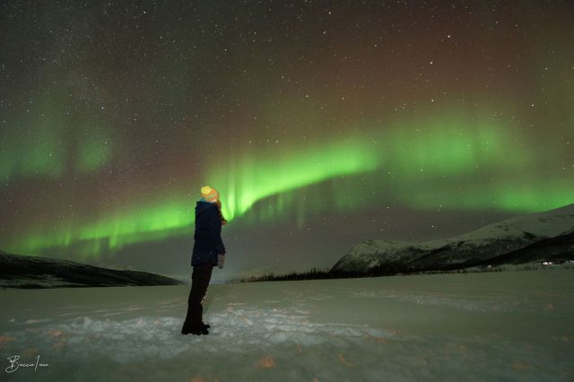 Yo escogí northenshotstour y fue todo un acierto. Por 990 Nok (100 euros aprox) nos llevaron a unas 2 horas de Tromsø, donde había un lago y un pueblecito al fondo para que la cámara pudiera enfocar hacia su luz, y además conseguir una foto en la que la aurora se refleje en el lago. Para soportar mejor el frío nos ofrecían chocolate caliente y unas cookies, y el guía nos asesoraba para ajustar correctamente la cámara. Si tienes mucho frío, siempre puedes meterte en el autobús, aun a riesgo de perderte el espectáculo o verlo por la ventana. También existe una opción llamada Aurora Pass, por 2300 Nok, con la que puedes ir los 7 días de la semana y así tener más posibilidades de verla. Mi segunda vez en invierno en Tromsø lo hice con Arctic Travel Company, nos llevaron por la isla de Kvaloya y estuvimos sobre un fiordo congelado, en la que la luz verde se reflejaba sobre la nieve. Y terminamos la noche en una playa al calor de una hoguera, bajo auroras ya mucho más débiles.