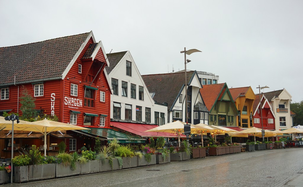 - El Puerto, que alberga gran parte de la vida de la ciudad y desde el que se pueden contemplar algunas de las postales típicas de Stavanger. Tiene una zona con los clásicos edificios de colores que se han transformado en tiendas, bares y restaurantes. Cuando hace buen tiempo, sacan las terrazas al paseo y por la noche concentran la vida nocturna.