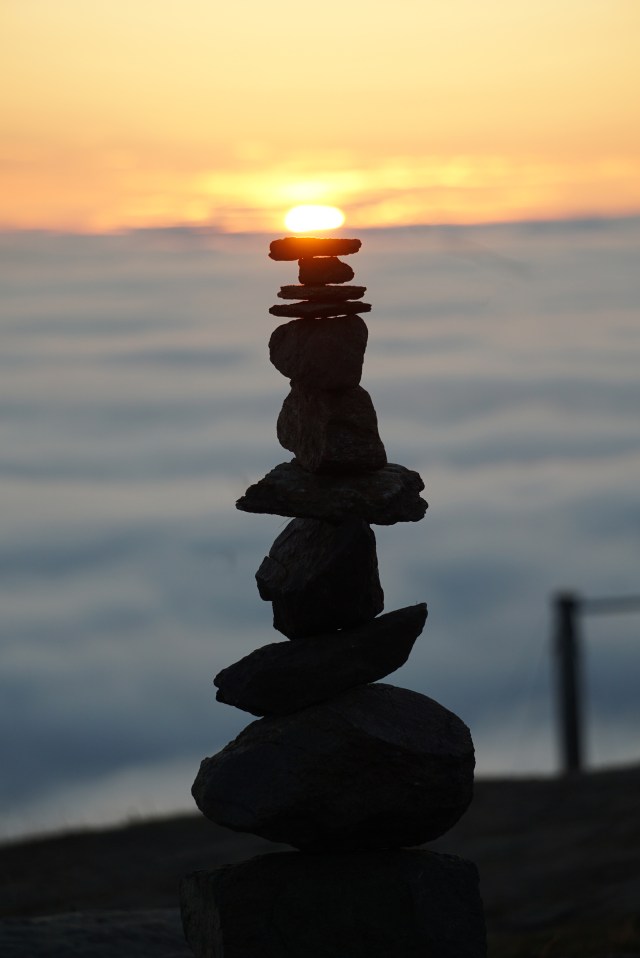 El Sol de medianoche sobre un hito. Tromsø.