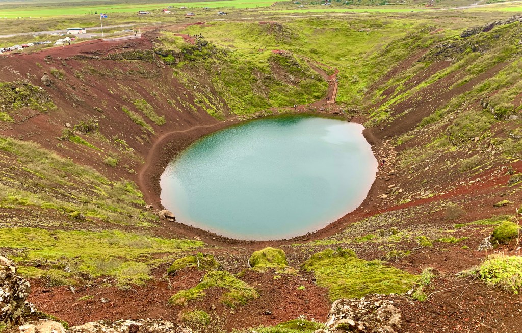 La siguiente parada fue el cráter Keriđ, con su pequeña laguna de color turquesa rodeada de tierra roja y escasa vegetación, que si tienes la suerte de visitarlo en un día soleado alucinarás con el contraste de colores que crean el agua y la tierra. Mide 270 metros de diámetro y tiene una profundidad de 55 metros.