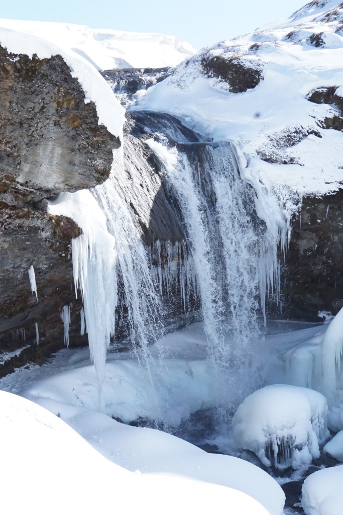 Unos 15 minutos hacia el este se encuentra la cascada Selvallafoss. Me dejó cautivada porque el agua estaba completamente congelada. Varias personas se arriesgaron a bajar y ver la cueva que hay debajo, pero sólo lo recomiendo si llevas crampones.