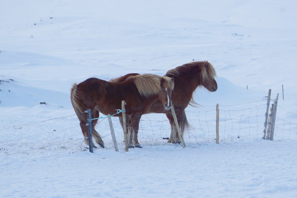Y ya en tu camino de vuelta hacia la A1 podrás seguir disfrutando de paisajes alucinantes. En verano todo muy verde y en invierno todo cubierto de nieve. Yo he tenido la fortuna de contemplar ambos escenarios, en septiembre y a finales de marzo, en el que la zona sur apenas tiene hay nieve pero los ríos están congelados, mientras que en la cara norte, se mezcla la nieve y la lava negra haciendo parecer que se han desperdigado galletas oreo por doquier. En verano, el paisaje está salpicado de ovejas. En invierno, tan sólo se ven algunos caballos que resisten a los vientos gélidos que soplan en esta parte de la isla.