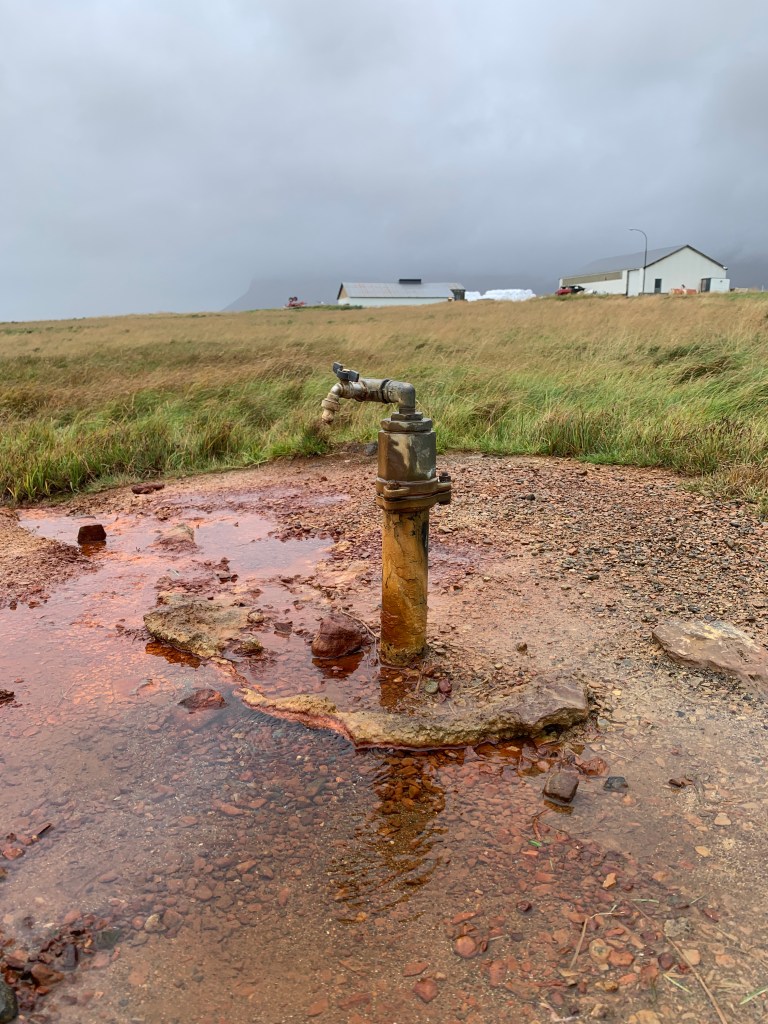 Ölkelduvatn Mineral Spring es una curiosidad de esas que hacen de Islandia un lugar único. Se trata de un grifo en medio de una granja que dispensa agua mineral carbonatada, lo que conocemos comúnmente como agua con gas. Hay un cartel que anuncia que los dueños de la granja aceptan donativos. Yo creo que dentro que poco pondrán un datáfono porque los turistas no llevamos coronas sueltas encima.