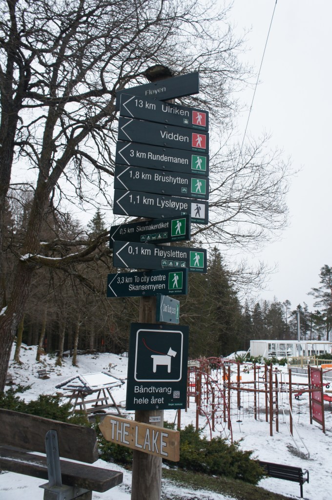 Mirando hacia la izquierda desde lo alto del monte Fløyen verás el Teleférico de Ulriken, ubicado a 643 metros sobre el mar. No siempre se puede subir ya que depende mucho de las condiciones climatológicas. De hecho, yo no pude hacerlo por culpa del viento y la niebla.