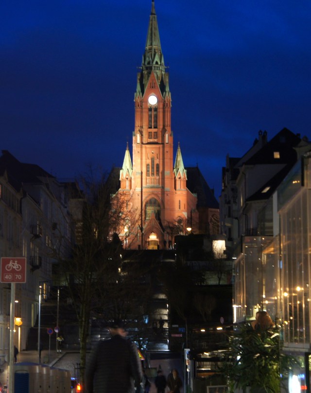 La iglesia Johanneskirken (San Juan) se ve desde cualquier punto de la ciudad, gracias a su altísima torre de color rojo. Cuenta con una larga escalinata y, al igual que todas las iglesias nórdicas, el interior es todo de madera.